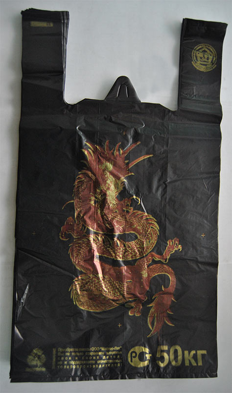| Пакет-майка Дракон из материала ПНД (полиэтилен низкого давления) имеет повышенную грузоподъемность, характерно шуршит при смятии. Увеличение внутреннего объема пакета происходит за счет фальцев. Петля позволяет удобно размещать пакеты-майки в кассовой зоне. Используется для упаковки пищевых и непищевых продуктов в супермаркетах, торговых точках прилавочного типа и точках общественного питания |