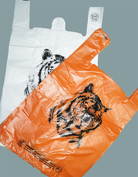 Пакет-майка с рисунком Тигр 40х68 18 мкм из материала ПНД (полиэтилен низкого давления) имеет повышенную грузоподъемность, характерно шуршит при смятии. Увеличение внутреннего объема пакета происходит за счет фальцев. Петля позволяет удобно размещать пакеты-майки в кассовой зоне. Используется для упаковки пищевых и непищевых продуктов в супермаркетах, торговых точках прилавочного типа и точках общественного питания.